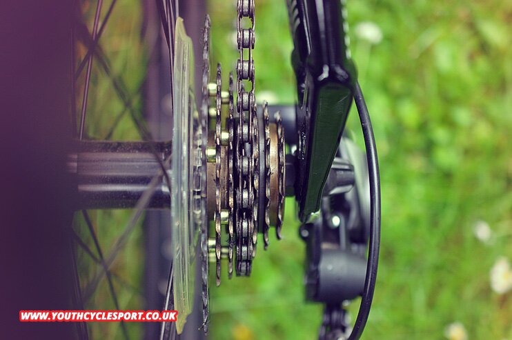 Boardman’s junior MTB does have a 34 tooth biggest sprocket though, which gives a suitably low gear ratio for off-road climbs.