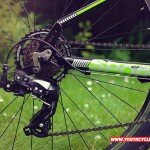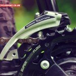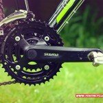In the last few years Boardman’s adult MTBs have moved from a triple chainset to a double chainset which has advantages of weight, simplicity, and usability. So we were quite surprised that the new junior MTB has three chainrings, especially as children often find gear choice difficult when riding off-road. A child is unlikely to ever need the bike’s 42 tooth outer chainring off-road.