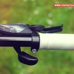 The MTB uses the same handgrips, gear shifters and brake levers as the hybrid, and they are positioned in the same way. Our testers found the bike more comfortable and easier to control after we moved the shifters and levers several cm further towards the handlebar stem.